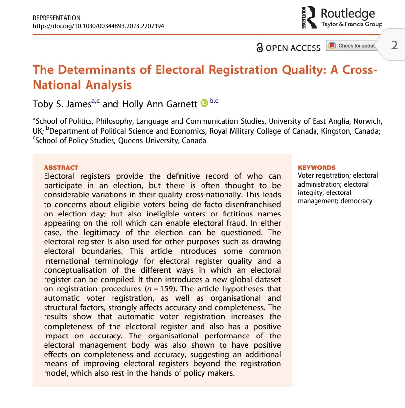 Holly Ann Garnett and I evaluate electoral register quality in 159 countries in a new research paper.