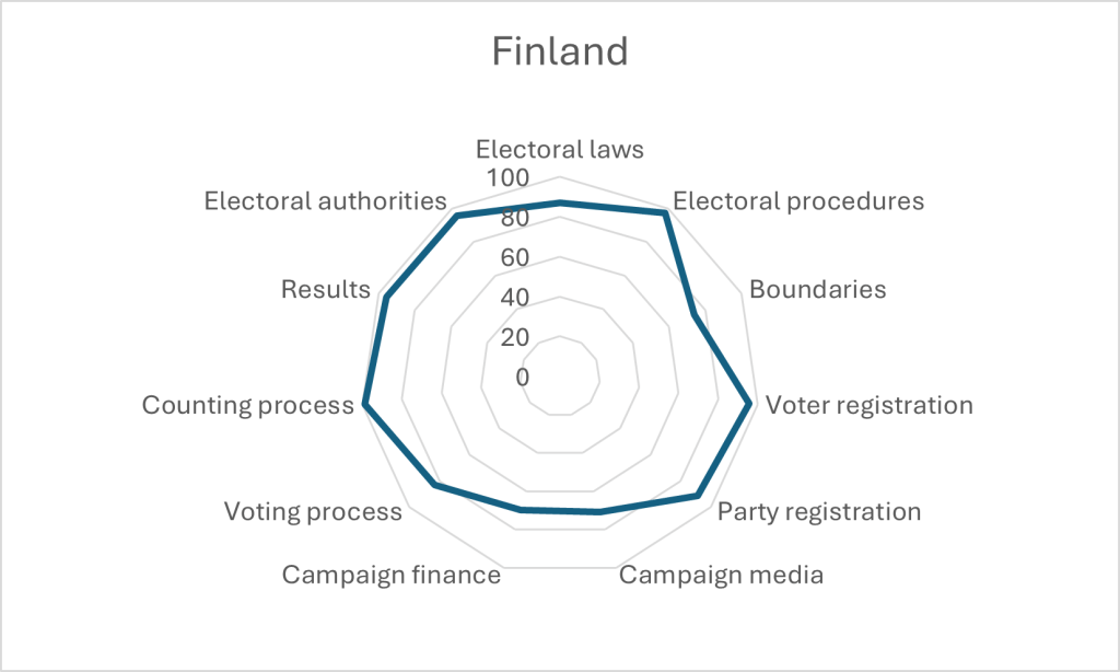 Election quality is the highest in Finland (see graphic) where electoral laws are fair to smaller parties, voter registration is seamless and electoral authorities are professional.