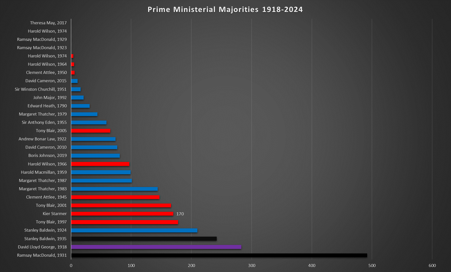 The size of the Prime Minister’s majority. Where will 2024 be? Here’s the history and 2024 based on the BBC Exit Poll: