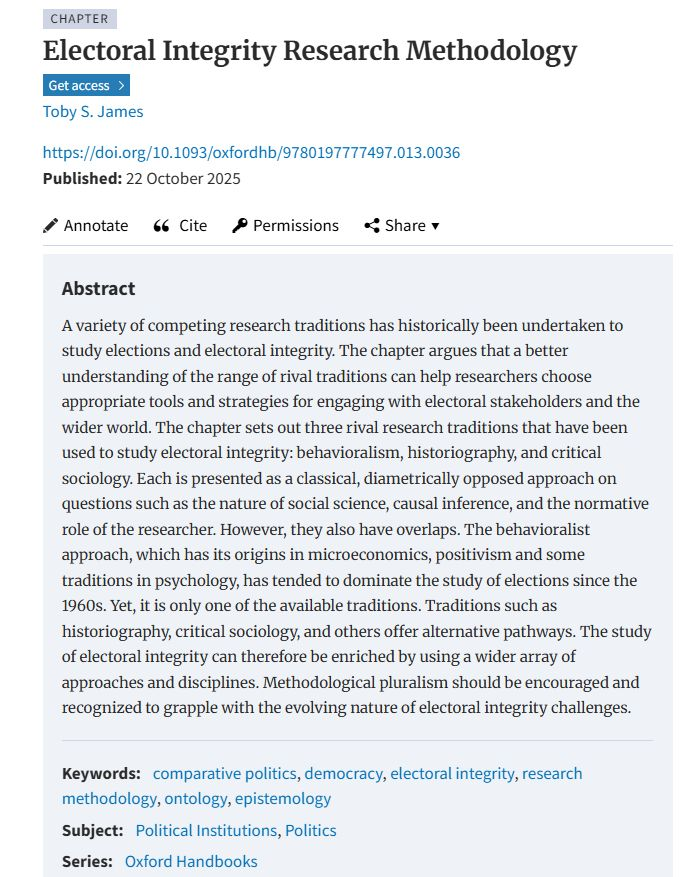 In this new chapter for the Oxford Handbook of Electoral Integrity I profile three rival (but sometimes overlapping) approaches which can be taken: behaviouralism, historiography and critical sociology.